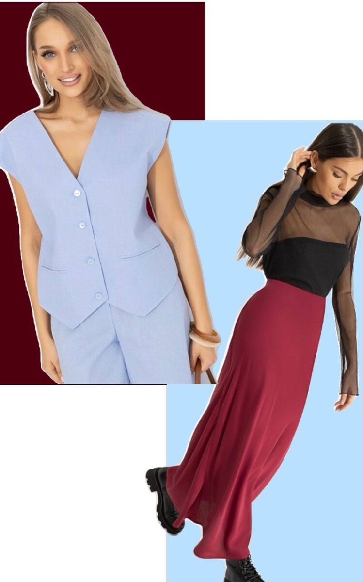 Бордовый + нежно голубой Жилет - 1790Р СМОТРЕТЬ НА САЙТЕ Юбка - 1790Р СРОЧНО В ЗАКАЗ
