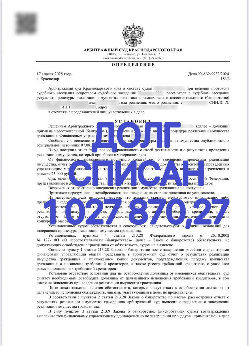 "Минус миллион долгов — плюс спокойствие" 🖋️В ноябре 2023 года к нам обратился Артём — личный водитель руководителя крупной компании. 🪪 Его финансовое положение было критическим: долги перед банками и микрофинансовыми организациями превысили 1 027 870 рублей 💸 Артём снимал жильё 🏠, не имел имущества и находился под постоянным давлением 😣из-за кредитных обязательств 😟 Мы сразу включились в работу: подготовили документы, 🗃️обосновали позицию📑 и подали заявление о признании его банкротом ⚖️. 📊 Процесс оказался непростым — заседание было отложено 📅по причине болезни судьи ведущего этот процесс👨🏻⚖️, а кредиторы активно выдвигали встречные требования, стараясь осложнить ситуацию 🗄️ 📌Но мы не отступили 💪 📙 Чёткие расчёты, 📗внимательная подготовка 📘 уверенное представление интересов доверителя - сделали своё дело ⚙️ 💎Артём был официально освобождён от долгов 🎉 Он поблагодарил всю команду за профессионализм и человеческое отношение, отдельно отметил поддержку со сто