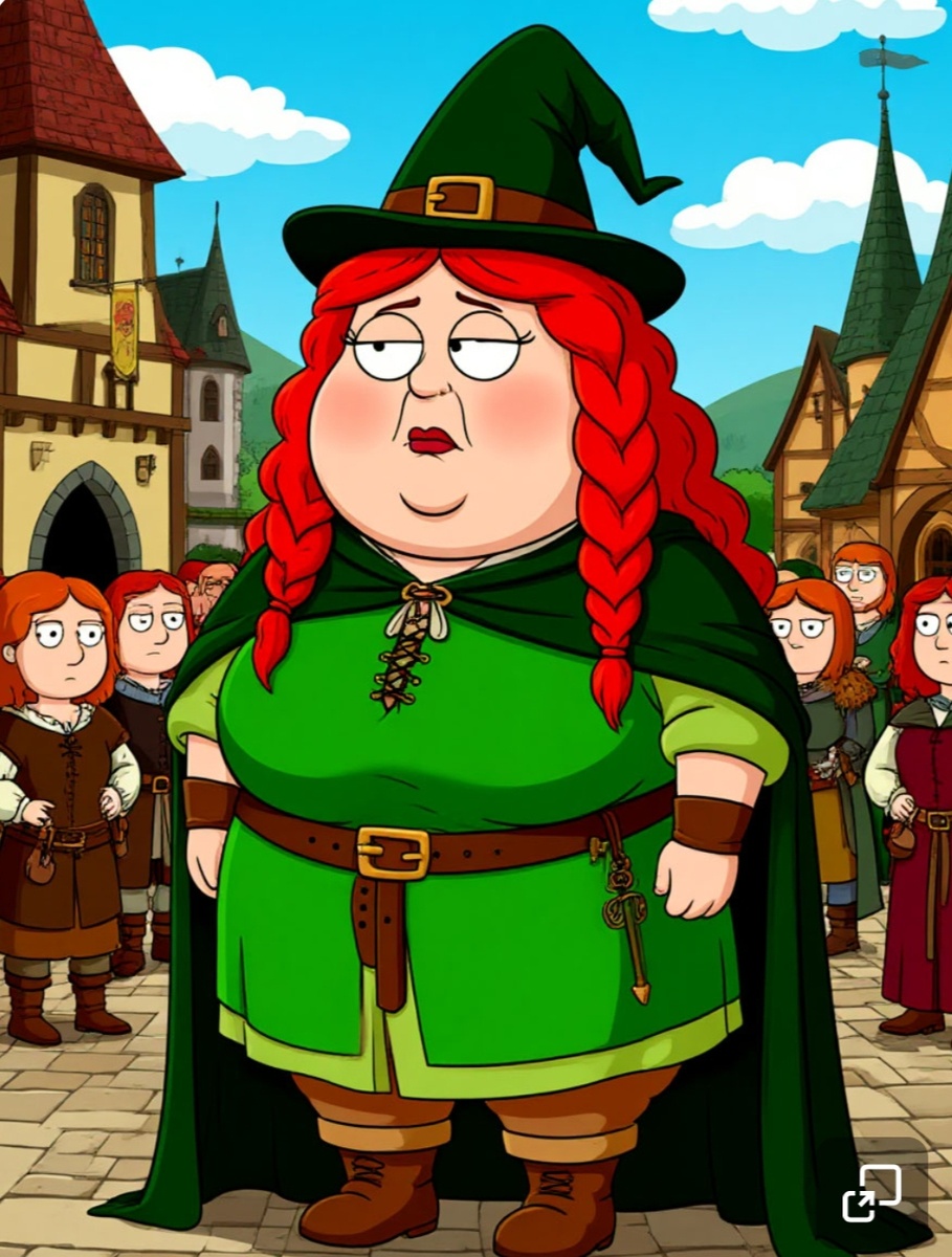 - Чего ху ху?Красива я,стройна и так юнна!Как статуэтка иль студентка выгляжу всегда! В зеленом я как на болоте Шрек,не знаю правда,кто такой,но он какой то знаменитый там герой !- восклицает леди Чушильда и с криком" За мной,дети мои!" царственной гнусявой походкой выходит из замка.
