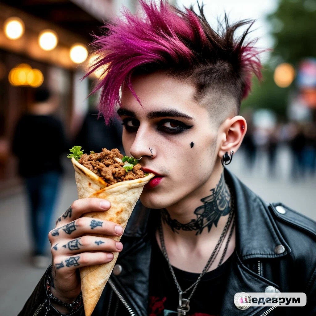 Как-то раз панк по имени Джон решил перекусить и купил в ближайшем киоске горелую шаурму. Он был очень голоден и не обратил внимания на то, что шаурма была с грибами. Но когда он начал есть ее, он почувствовал странный запах и вкус. Запах был очень неприятный, а вкус шаурмы был горьким и кислым. Джон понял, что он купил испорченный продукт и решил выбросить его. Он выбросил шаурму в мусорный бак и пошел домой. На следующий день Джон почувствовал себя плохо. У него начались боли в животе, тошнота и рвота. Он понял, что отравился испорченной шаурмой и обратился к врачу. Врач провел обследование и выявил у Джона пищевое отравление. Он назначил лечение и посоветовал больше не покупать испорченные продукты. Джон понял, что нужно быть более внимательным к тому, что он ест. Он решил больше не рисковать своим здоровьем и покупать только свежие продукты. С тех пор он стал более осторожным и внимательным к качеству еды, которую он ест.