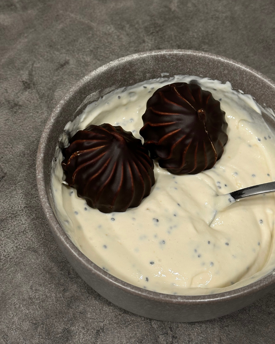 Далее добавляем семена чиа и я ещё бонусом добавила пп-шные зефирки, на две штучки всего 90 ккал - это восторг!