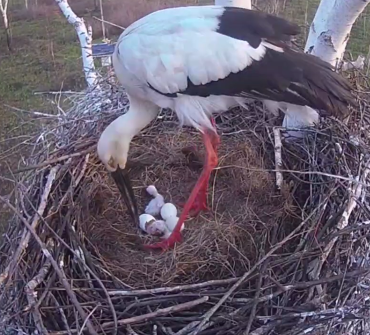 Камера зафиксировала появление двух птенцов, еще два яйца ждут своего часа. Первое яйцо в гнезде аистов проклюнулось еще 9 мая, а на следующий день птенец полностью освободился от скорлупы, рассказал эколог Антон Сасин в своем телеграм-канале. «Остатки скорлупы аист выкинул. Второе яйцо тоже уже проклюнулось», - написал он 10 мая и предположил, что на следующий день появится второй птенец. Так и произошло. Утром 11 мая эколог сообщил о появлении второго малыша. Речь идет о семействе дальневосточных аистов из Березовского заказника, который находится недалеко от села Березовка в Ивановском округе. Гнездо аистов располагается на березе, а над ним установлена камера, которая позволяет наблюдать за жизнью птиц в режиме онлайн. Скриншот видео t.me/amur_birds Читать на сайте ТЕЛЕПОРТ.РФ Еще больше новостей в нашем телеграм-канале https://t.me/amurobl