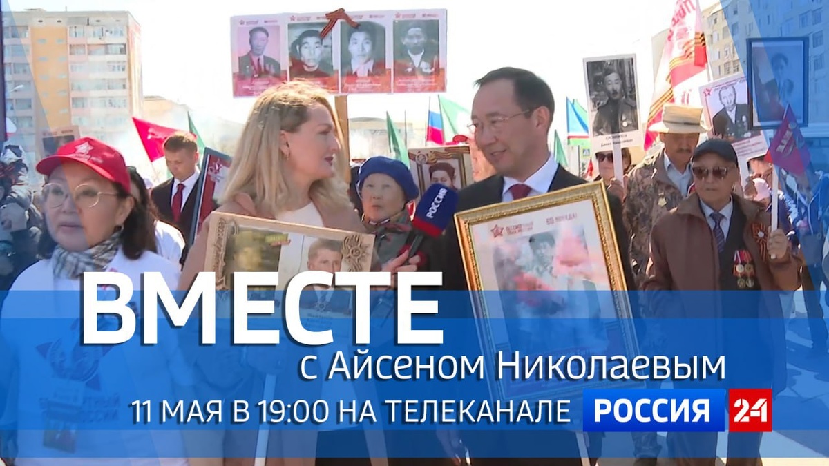 ⚡️ Смотрите новый выпуск передачи «Вместе с Айсеном Николаевым» Специальный проект ГТРК «Саха» — передачу «Вместе с Айсеном Николаевым» покажут сегодня, 11 мая, в 19:00 на телеканале «Россия 24». В этот раз в программе: глава Якутии прошел в рядах Бессмертного полка — более пятидесяти тысяч человек только в Якутске пронесли портреты своих Героев; главный военный парад в стране — кто из якутян принял участие. Подробнее читайте по ссылке 🖥 @Якутия 24