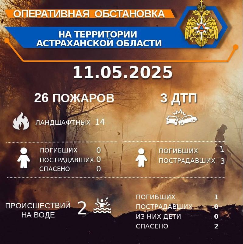 🚨Оперативная обстановка на территории Астраханской области по состоянию на 00:00 11.05.2025🚒