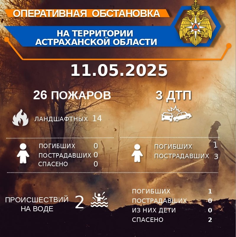 🚨Оперативная обстановка на территории Астраханской области по состоянию на 00:00 11.05.2025