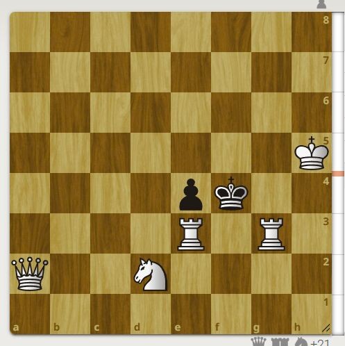 Автор задачи Лебедев Л.А., 2000 год. Великолепное сочетание две белые ладьи и почти между ними черный король. Черный король может идти только в 8 ряду. Белые начинают и ставят мат в 2 хода. Более мощная задача тут >>>>>> Первый верный ход смотрите в галерее. Друзья не забудьте поддержать автора тут >>>>.