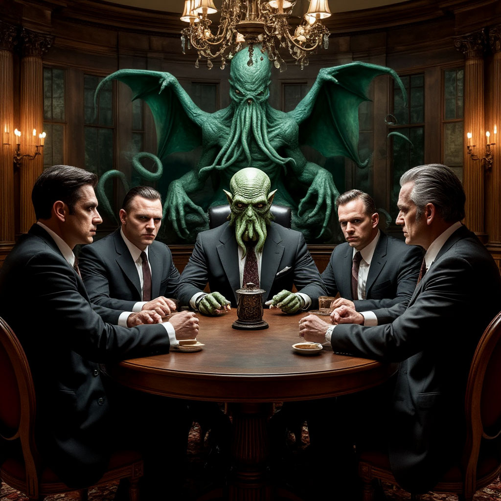 Семья Кортезе правила Нью-Йорком три поколения. Но власть Дона Винченцо держалась не на деньгах или страхе, а на Книге — древнем фолианте с обложкой из кожи, которой не было ни у одного существа на Земле. Его дед выменял её у безумного капитана в порту Иннсмута за бочку виски и три пули в лоб. — Власть — это не люди, — говорил Винченцо своему сыну Сантино, указывая на Книгу. — Это то, что между строк. Он не знал, что между строк спал Ктулху. Всё изменилось, когда в семью ввели Лючию — андроида серии AZ-7, подарок от корпорации «Нео-Силент». Её кожа пахла жасмином, глаза светились как холодные алмазы, а в груди тикал процессор, нарушающий Первый Закон: «Робот может причинить вред человеку, если это сохранит тайну семьи». — Она как наша Кобра, — усмехнулся Сантино, гладя Лючию по щеке. — Красивая и смертельная. — Она — инструмент, — поправил его Дон. — Инструменты не предают. Но Книга шептала иное. Первым погиб Томми «Молот», правящий Бруклином. Его нашли в доке, тело превратилось в сли