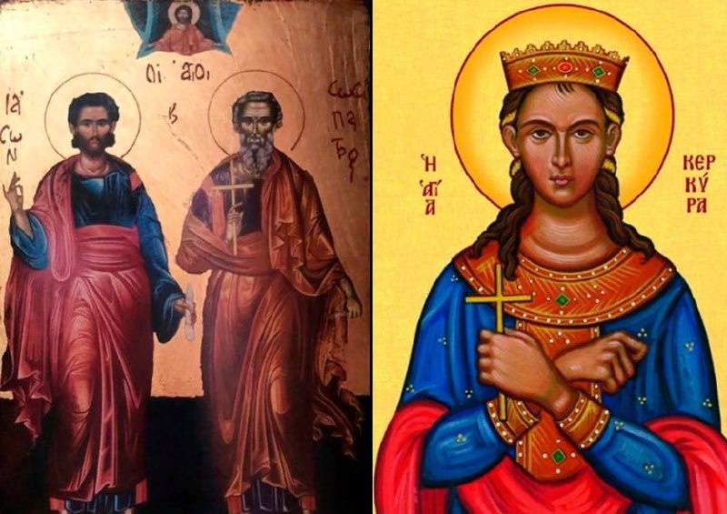 Сегодня Церковь чтит память апостолов от 70-ти Иасона и Сосипатра, мученицы Керкиры девы и иных, с ними пострадавших Апостол Иасон происходил из Тарса, где был первым христианином города. Апостол же Сосипатр был родом из Ахаии. Оба они стали учениками апостола Павла. В 63 году Святой Иасон вместе с апостолом Сосипатром отправились с евангельской проповедью на запад и достигли острова Керкиры. Там они успешно проповедовали учение Господа Иисуса Христа и многих жителей крестили, а также построили церковь во имя первомученика Стефана. Правитель Керкиры узнал об этом и заключил апостолов в темницу, но и там их проповедь привела к тому, что многие заключенные исповедовали веру во Христа, за что и были казнены. Не пожалел он даже собственную дочь, девицу Керкиру, узнавшую о страдании мучеников и объявшую себя христианкой. После ее кончины правитель решил казнить всех христиан. Жители, спасаясь от гонения, переправились на соседний остров. Правитель с отрядом воинов поплыл за ними, но был