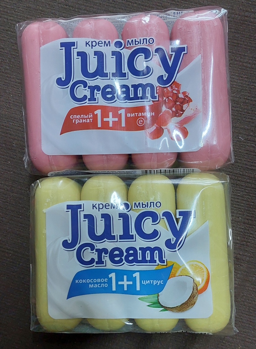 Всем привет, взяла в фикс прайс новинку(для фикс прайса) Конечно на рынке это далеко не новинка. У меня есть такое мыло. Хочу сказать что мыло отличается. Новая партия имеет лёгкий аромат основы, но гранат и цитрус очень яркий. Так же новинка из Доброцена. Тут конечно преобладает аромат основы. А это подарок от подписчицы, Катюши. Очень была рада получить такой сюрприз. Как оказалось меня было такое мыло...рада что теперь смогу попробовать его. Самое интересное, что мыло одной даты производства, но моё прям подсохло...даже упаковка стала большевата...а новые экопаки мягкие. На этом всё...всем спасибо за внимание!