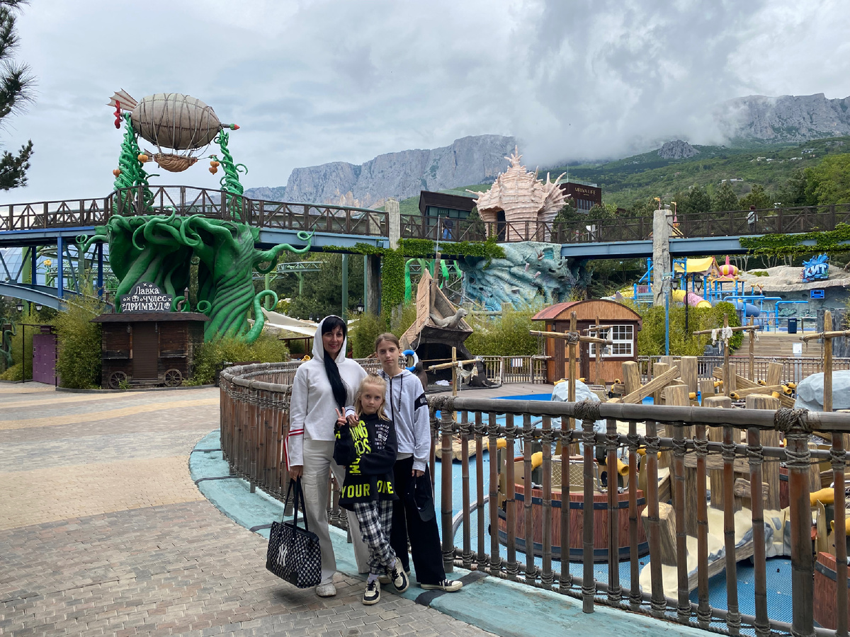 Во-первых, было холодно! Мы одели тёплые свитера, а нужно было надевать куртки, настолько в Крыму резко похолодало! Целый день мы мёрзли, что уже само по себе не комфортно! Выезжали в 7.00 утра и всё надеялись, что ‘распогодится’ , выйдет солнышко, но чуда не произошло И ещё пошёл дождь! Естественно аттракционы закрыли.После того как дождь закончился, ещё час ждали, пока просохнет и аттракционы откроют! В итоге 2 часа потеря времени! Мы приехали на заказном автобусе, время ограничено ((