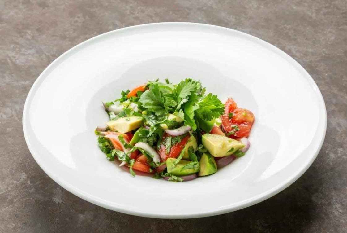 Обед: 🥑Салат с чечевицей и авокадо. • 100 гр чечевицы (отварной) • 1/2 среднего авокадо • 150 гр томаты черри • 60 гр шпината • 20 гр. петрушки • 1 чайная ложка оливкового масла 📌Приготовление: Нарезать овощи, добавить отварную чечевицу, заправить маслом, посолить и поперчить.