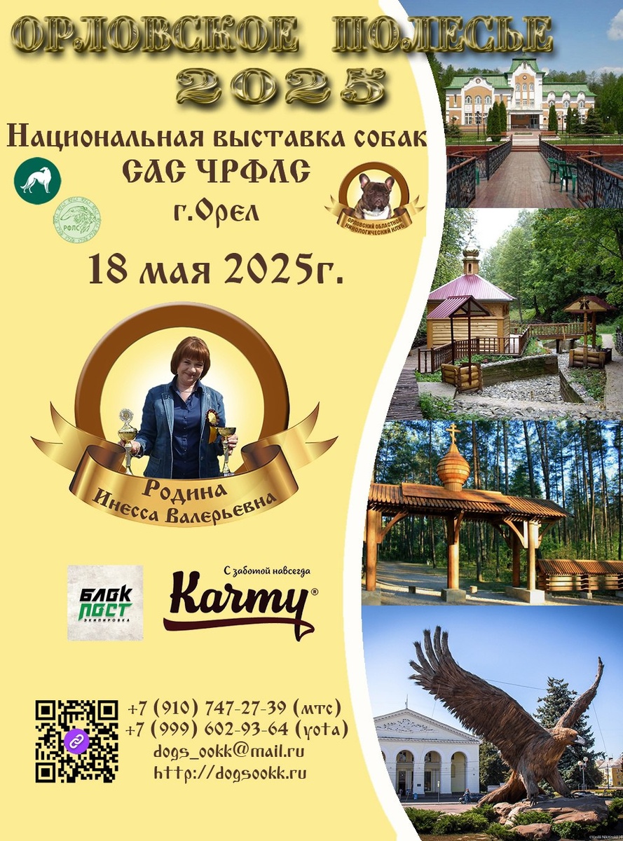 ⏰ 18 май (7д) 🏛 #Орел #Россия #Выставка 🐶 Выставка собак: ОРЛОВСКОЕ ПОЛЕСЬЕ - 2025 🏆 Орловский Областной Кинологический Клуб Контакты организаторов здесь: 🌐 https://www.petsman.ru/vystavki-sobak.php?mesto=401-orel Национальная выставка ранга САС-ЧРФЛС "ОРЛОВСКОЕ ПОЛЕСЬЕ - 2025" КЧК в каждом классе "Французский бульдог - 2025" 🧑 👨 Эксперты: 🔹 Родина Инесса Валерьевна (г. Москва)