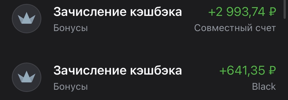 Наступило 10е число, а это значит, что по картам ТБанка зачислен кэшбек, который мы заработали за предыдущий месяц. На самом деле в последние месяцы категории повышенного кэшбека все хуже и хуже. Но зато при таких вводных приходится тщательные смотреть за всеми акциями банка, чтобы поймать выгоду. Таки образом в этом месяце мы пользовались доставка продуктов из перекрестка с кэшбеком до 25%. Так как у нас есть два счета в Тбанке, это моя дебетовая карта, по которой пришел кэшбек 641,35 руб и наш совместный с мужем счет, к которому привязано две карты - моя и его, по данному счеты пришел кэшбек 2 993,74 руб. Соответственно, суммарно мы заработали 3 635,09 руб. Давно уже не было такой суммы возврата от банка, поэтому выглядит она очень приятно. Когда-то давно я рассказывала о том, что решила весь заработанный кэшбек отправлять на брокерский счет. Конечно, жизнь внесла свои коррективы и вносились деньги не каждый месяц, но все равно я старалась что-то добавлять. На канале есть подборка