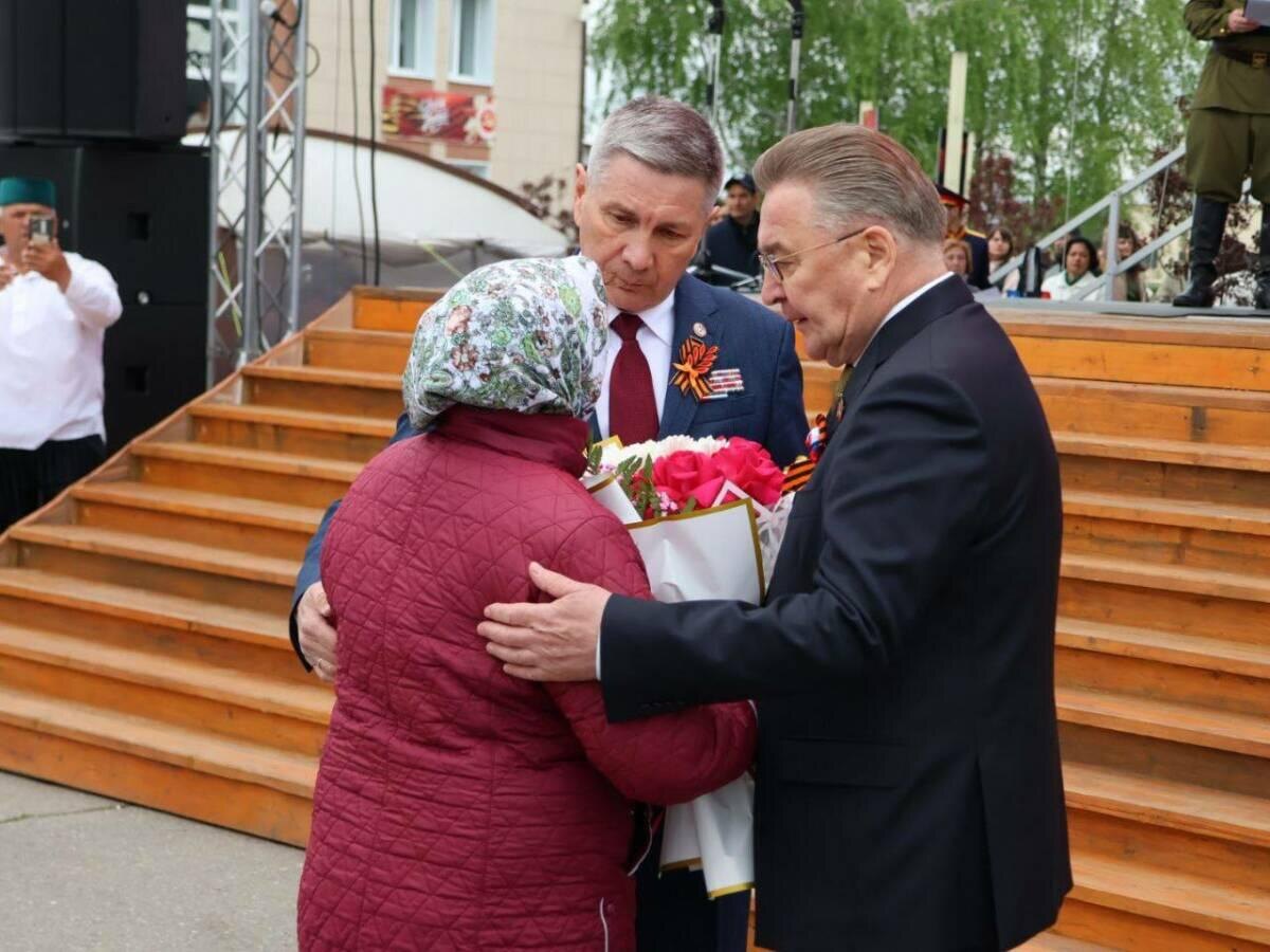 Глава Актанышского района Ленар Зарипов поздравил жителей с праздником, после чего депутат Госсовета РТ Айрат Хабибуллин зачитал обращение от имени Раиса Татарстана Рустама Минниханова.
