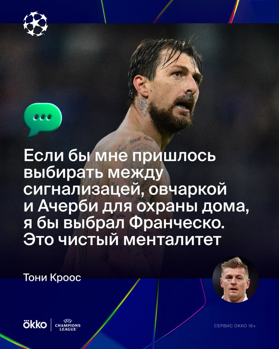 🔒 Кроос фанатеет от Ачерби. Тони сильно впечатлился игрой Франческо против «Барсы».
