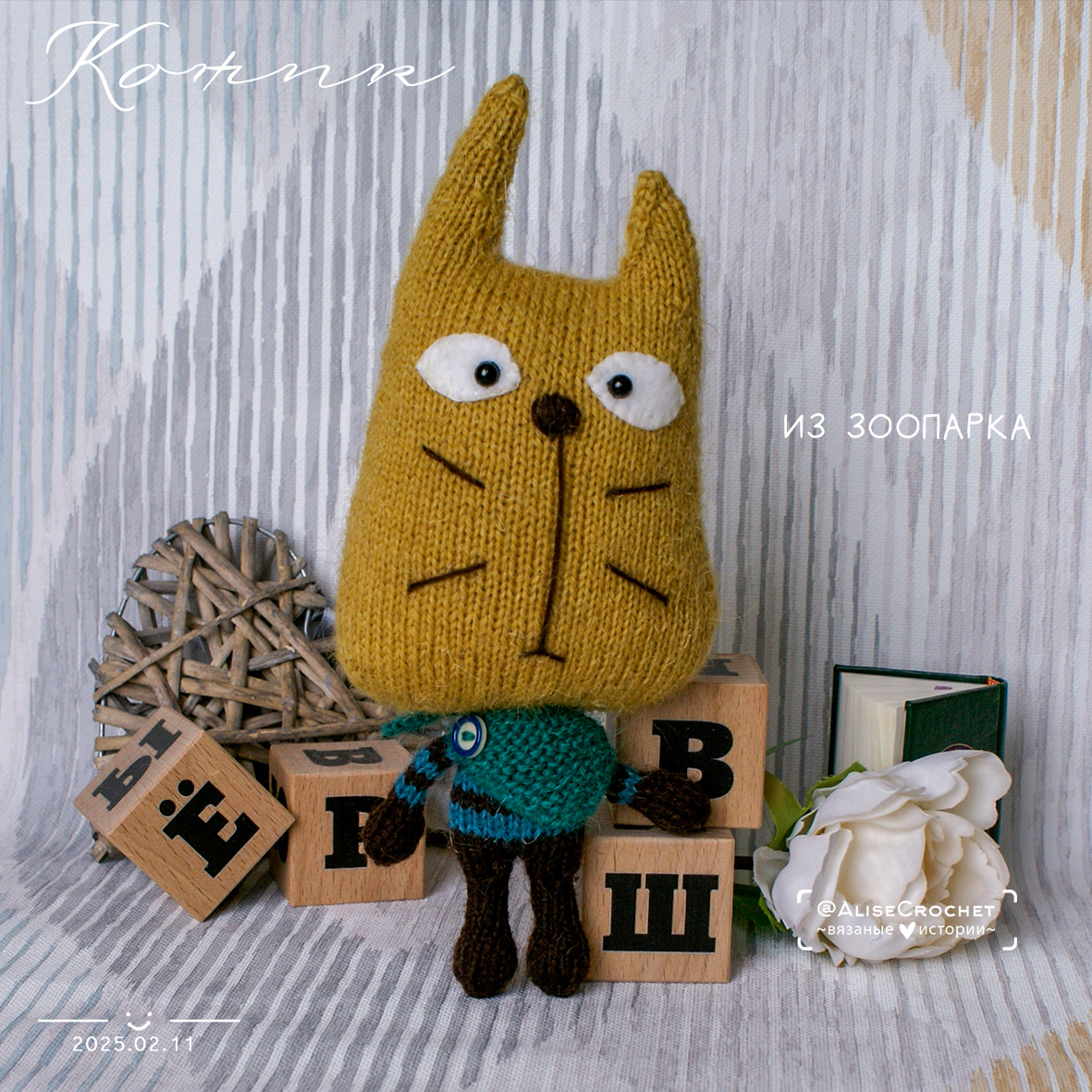 Рыжик – необычный кот из Зоопарка вязаных чудес В уютном городке, где дождик стучит по крышам, а в кафе всегда пахнет корицей, жила мастерица. Она создавала волшебных существ из пряжи, но самым любимым её творением был Рыжик – вязаный кот с огромной головой и глазами, как два блестящих мармелада. История Рыжика Однажды мастерице приснился сон: в её шерстяном зоопарке поселился рыжий кот-мечтатель с головой, похожей на тыкву. Проснувшись, она тут же взяла спицы и оранжевую пряжу. Так появился Рыжик – неуклюжий, но бесконечно обаятельный. Особенности персонажа: - Головастик – из-за большой головы он вечно заваливался набок, но это только добавляло ему шарма. - Любимец публики – в «Zoopark» (так мастерица называла свою коллекцию) он стал звездой. Посетители шептались: «Это же кот из мультфильма!». - Секрет устойчивости – его просто нет....Но зато он может украшать как бреолочек чью-то сумочку или просто быть чьим-то другом. Почему его обожают? - Теплый друг – его дарили детям, которые бо