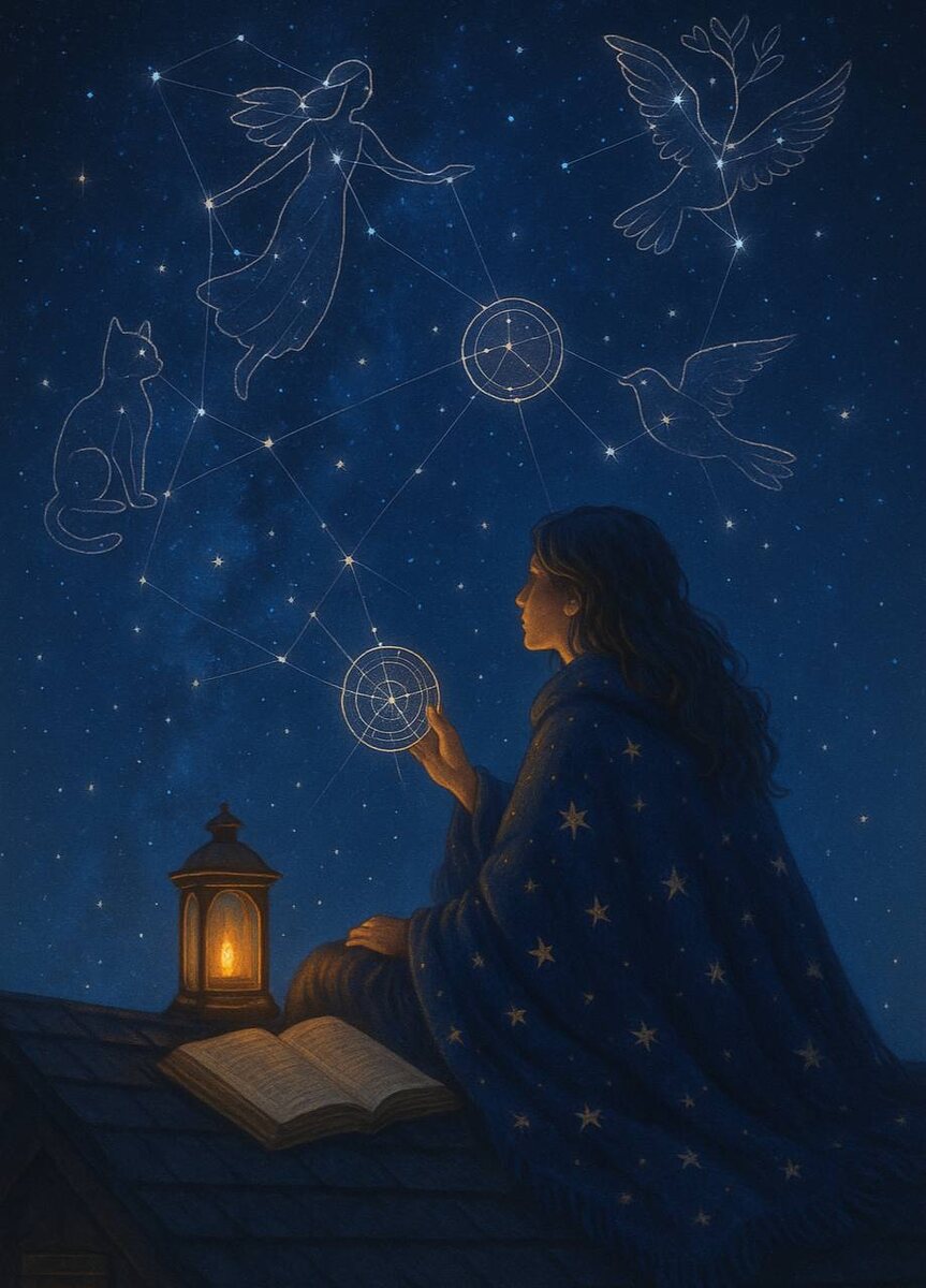 Вчера весь день с подругой обсуждали её натальную карту. Ловили инсайты, искали закономерности, вспоминали, удивлялись - и будто бы заново собирали её историю, только теперь под новым углом. Астрологическим. Я вдруг поняла, как соскучилась по этому ощущению - мозг скрипит, разгадываешь символы, пытаясь перевести их русский язык. Строишь мостики между небом и землёй, между тем, что прожито, и тем, что впереди. Как-то я уже рассказывала, что изучала астрологию - серьёзно, глубоко, профессионально. Потому что она - не про «буду ли я богатым» и «выйду ли замуж в мае». Она - про новый взгляд на себя и опору, когда кажется, что со мной что-то не так. Она была для меня и наукой, и поэзией, и терапией одновременно. Практикующей астрологиней я была недолго, но в сердце всё ещё живёт любовь к этой древней карте смыслов. И вот подумалось: а не завести ли звездную рубрику? Такую мягкую, ненавязчивую, исследовательскую. Где будем смотреть на небо и в себя. Говорить про дома, аспекты, узлы, про