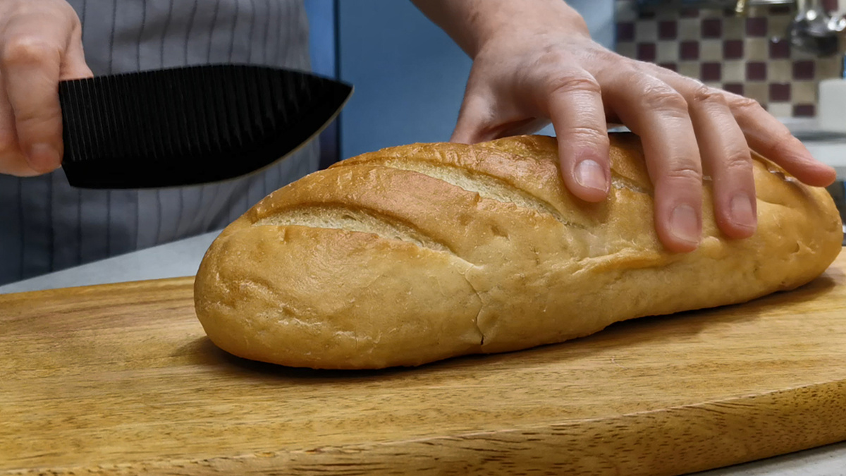Как наготовим таких вкусняшек, так съедаем все до крошки. Противень улетает за минуты. Иногда даже до супа и салата не доходит, вот как вкусно. Хоть и готовим мы их специально для этого. Такие вкуснющие сухарики крутоны. А ведь они из самого дешевого батона. Ингредиенты есть, как всегда, в конце. Но, честно говоря, в точности все это соблюдать совсем необязательно. Тут главное принцип и правильный подход. И тогда простейшие сухарики из старого или невкусного батона хлеба получатся как настоящий деликатес. Сейчас начнем готовить с вами вместе, а после этого и ингредиентов, не убегайте сразу. Там будет еще несколько шикарнейших рецептов для тех, кто любит простую вкусную еду. Итак, поехали. Берем самый заурядный белый батон. Пусть он даже, как я сказала, совсем невкусный или старый. Никакого другого варианта, более дорогого или свежего и мягкого не требуется. Что делать с батоном для начала догадаться несложно. Режем. Обычным довольно крупным кубиком. Если хлеб крошится или ломается нич