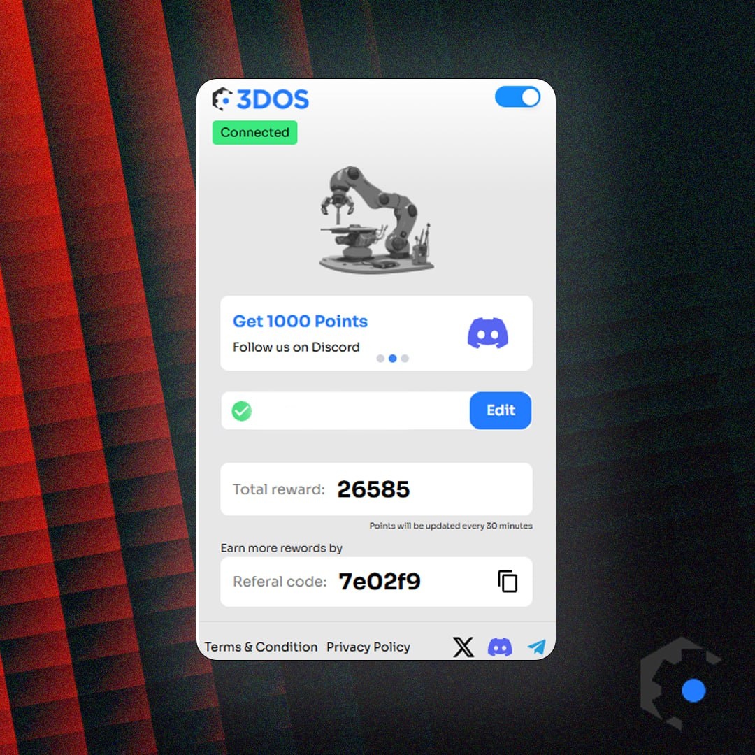 🖨 Новая браузерная надо на SUI Речь о 3DOS, который запустился как нода в апреле. По информации с CryptoRank проект привлек больше 1 миллиона инвестиций от tier 4 фонда Red Beard Ventures. Здесь же есть информация о подтвержденном аирдропе. 👀 В чем суть 3DOS? 3DOS - это платформа на основе блокчейна, которая объединяет глобальные производственные мощности, обеспечивая децентрализованное производство и вознаграждая участников токенами 3DOS. Разработчики 3DOS пытаются создать большую сеть из 3D-принтеров по всему миру, которую можно будет задействовать в реализации больших проектов за счёт доутилизации ресурса принтеров. Также будет маркет 3D моделей, где будет использован будущий токен. Посмотрел сайт проекта, там уже можно добавлять свои принтеры и размещать заявки на печать. 🤔 Почему стоит добавить ноду? — Потенциально интересный блокчейн SUI. — Дроп подтверждён. — Не жрет много ресурсов, отлично встанет рядом с Grass, Nodepay и другими. — Есть инвестиции и публичные основат