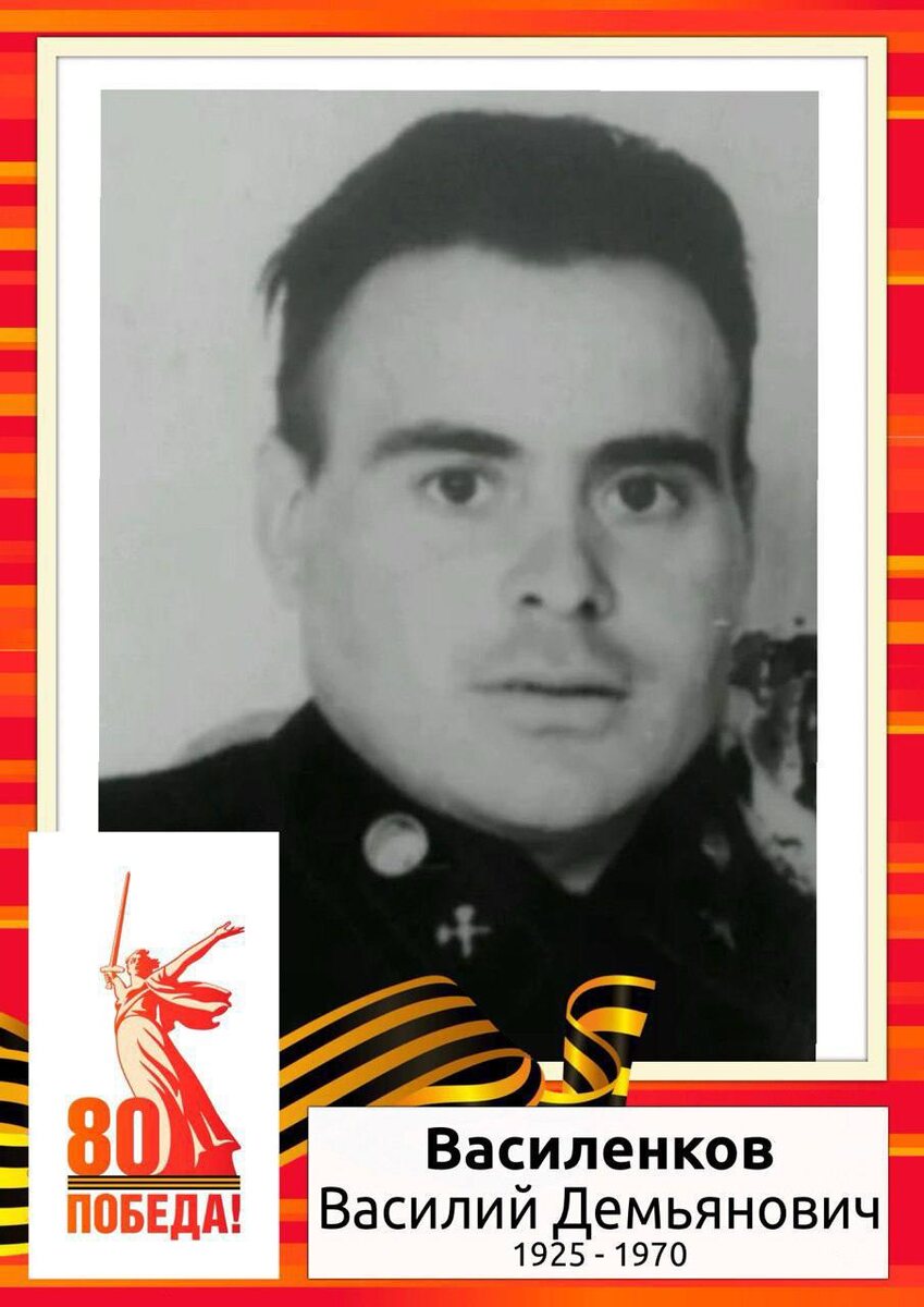 Мой прадед. Шел на фронт 1943 года в возрасте 18-ти лет. Прошел всю войну в артиллерийском фронте, домой вернулся в звании «Красноармеец рядовой». Имеет боевые награды: медали за отвагу, за боевые заслуги, за победу над Германией в Великую Отечественную Войну 1941-1945, орден Отечественной Войны 1-ой степени. 28 апреля 4 мая 1944 года при отражении развед-группы противника поддерживал связь с нпс, находящейся под обстрелом противника, обеспечил ведение огня и отражение разведки противника. Помним! Не забудем!