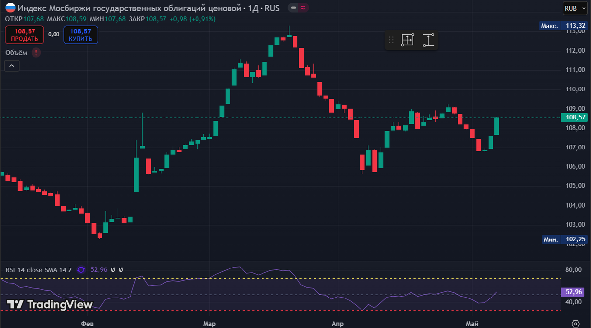 Минфин провёл аукцион ОФЗ, предложив инвесторам один выпуск. При его проведении индекс RGBI находился на уровне ниже 107 пунктов, покупатели рассчитывали на премию в связи со снижением индекса, но министерство на уступки не пошло: 🔔 По данным Росстата, за период с 29 апреля по 5 мая ИПЦ вырос на 0,03% (прошлые недели — 0,11%, 0,09%), с начала мая 0,02%, с начала года — 3,22% (годовая — 10,21%). В апреле инфляция составила 0,48%, да это меньше прошлогодних данных (0,50%), но это недельные данные, а как мы знаем, месячный пересчёт в большинстве случаев выше (недельная корзина включает мало услуг, а они растут в цене опережающими темпами). Такие данные для ЦБ положительный сигнал (снизилась даже годовая), но регулятор всё равно в пресс-релизе намекнул, что проведение жёсткой ДКП должно продержаться квартал, да и в прогнозе не исключил повышение ставки (среднегодовое значение ставки 19,5-21,5%). 🔔 Минфин планирует занять в 2025 г. 4,781₽ трлн (погашения — 1,416₽ трлн), сумма рекордная с