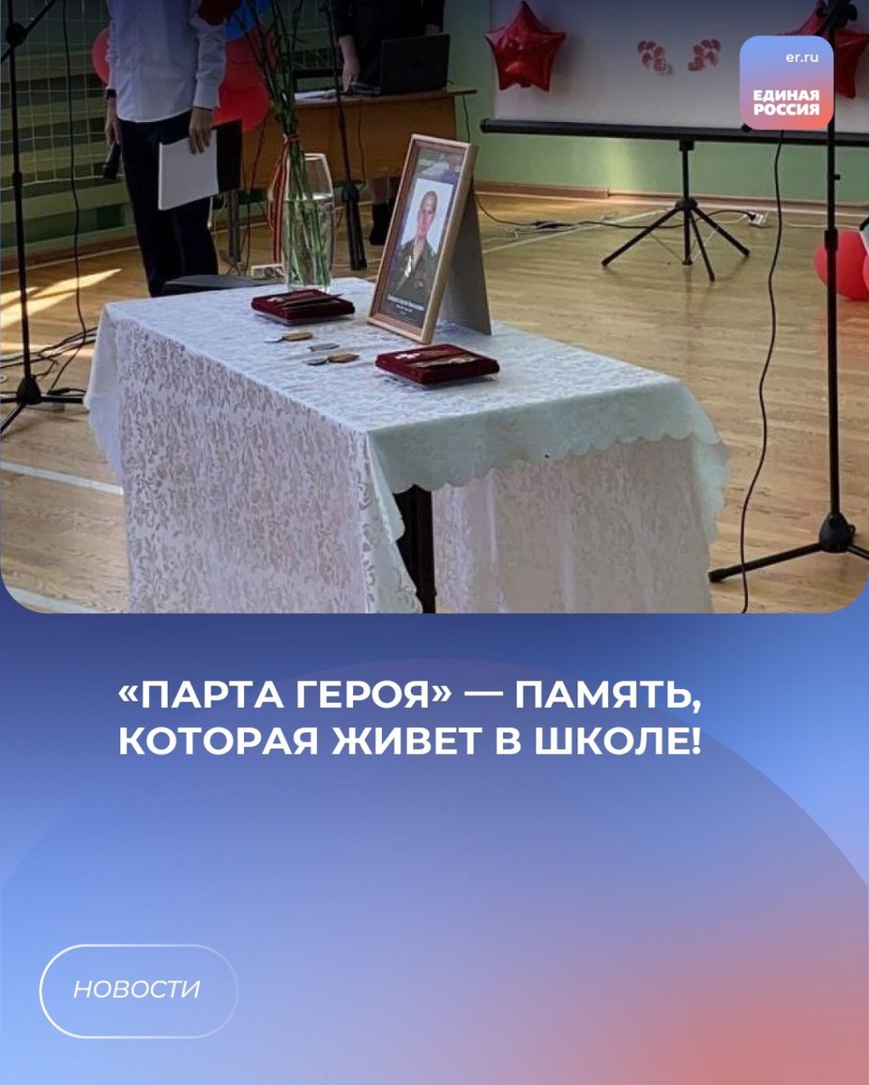 🔹В Петрохерсонецкой СОШ имени Г. И.Марчука, была торжественно открыта «Парта Героя» в честь увековечивания памяти участника специальной военной операции, выпускника школы – Лопарева Сергея Николаевича. 🔹В открытии парты поучаствовал депутат Законодательного собрания Оренбургской области от партии «Единая Россия» С.А. Аверкиев , глава Грачевского района Филатов Д.В., начальник отдела образования Гревцова Н.В., директор Петрохерсонецкой СОШ Пашкова Л. И. , родственники героя, учащиеся и учителя В Год Защитника Отечества в России, Год 80-летия Победы особенно важно помнить и чтить героев Великой Отечественной войны, а также героев нашего времени - бойцов специальной военной операции. Память о них жива всегда, она вписана в страницы истории нашей огромной страны. 🔹Сергей Лопарев погиб в 06.10.2024 года на территории. ДНР. Награжден медалью «За отвагу», «Медалью за боевые отличия», «Крестом Святого Георгия IV степени» Посмертно награжден орденом Мужества. 🔹Акция «Парта Героя» — это н