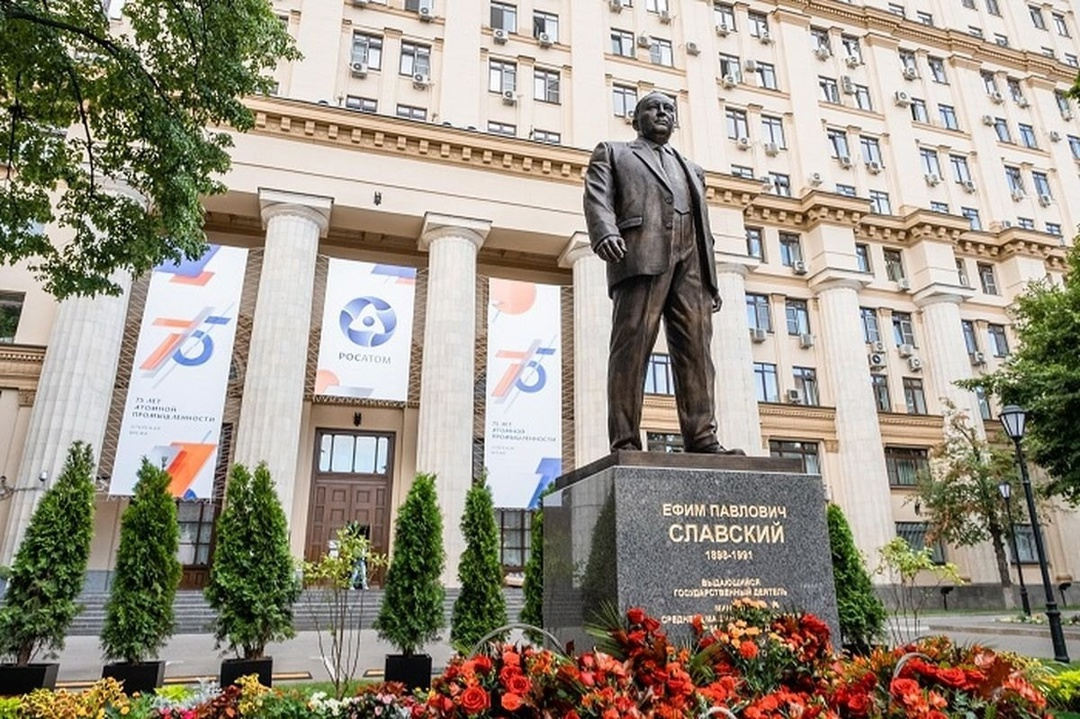 У тебя Москва - на А." Памятник первому атомному министру Е.П. Славскому (Большому Ефиму), у офиса Росатома в Москве на Ордынке. О визите Славского в Озерск детские воспоминания дочери водителя, который возил Славского и Курчатова , когда они наведывались на комбинат "Маяк" в материале Росатома. "Секретный водитель: кто возил Курчатова и Славского в Озерске"