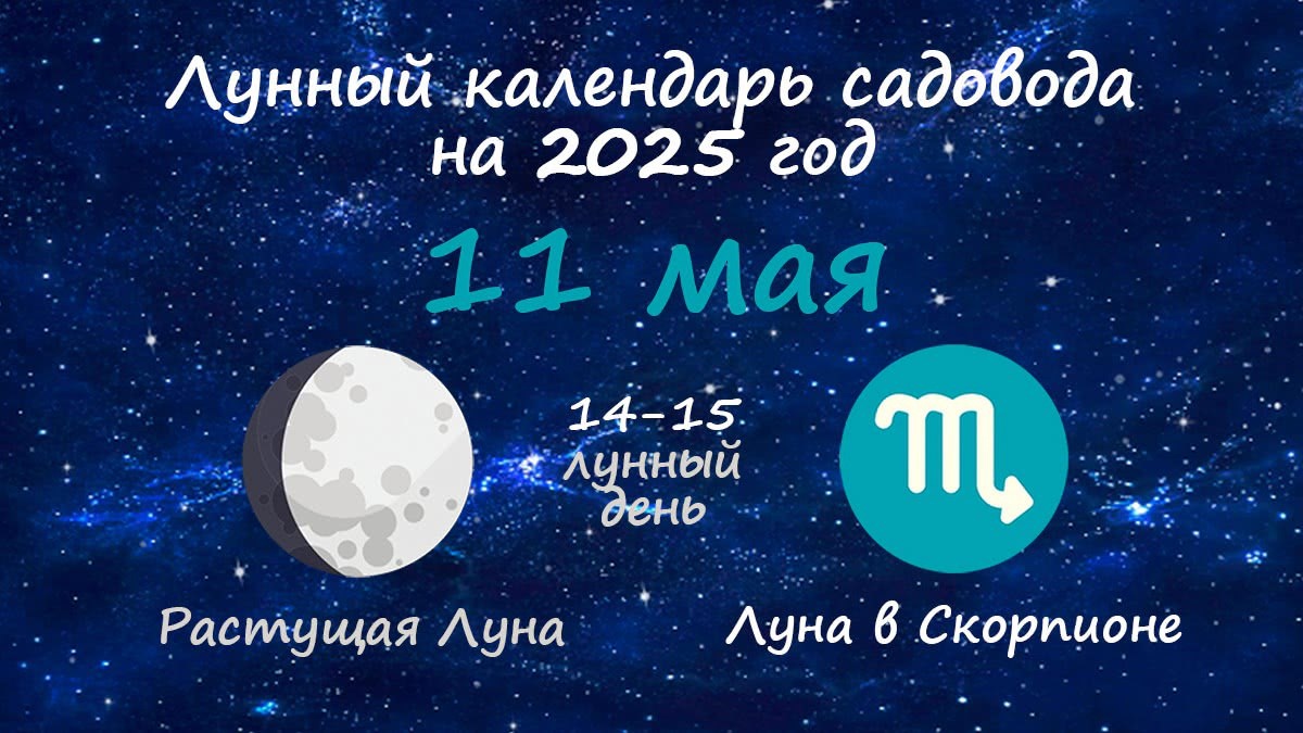Лунный посевной календарь садовода на 11 мая, воскресенье, 14-15-й лунный день. 🌔 Растущая Луна находится в Скорпионе ♏️ 🟢 РЕКОМЕНДУЕТСЯ 🟢 Готовить семена к посеву: замачивать и проращивать. Сеять и сажать на семена и на длительное хранение большую часть растений, в том числе вьющиеся, плетистые и те, у которых имеются колючки, шипы, жало, ребристые плоды или острые листья. Сеять зерновые культуры и лекарственные растения. Делать прививки и перепрививки. Поливать и полоть посадки, рыхлить землю, прореживать и окучивать всходы. Вносить в почву минеральные удобрения. Опрыскивать сад и огород от клещей, тли, яблонного цветоеда и грибковых заболеваний – ржавчины и парши. Нарезать и укоренять черенки и земляничные усы. Стричь газоны и лужайки. Закладывать органические отходы в компост. Заготавливать лекарственное сырье – листья и цветки. 🟡 ВОЗМОЖНО 🟡 Из крестоцветных культур сажайте кольраби, краснокочанную и белокочанную капусту. Сейте чеснок и лук – шалот, репчатый, шнитт и порей