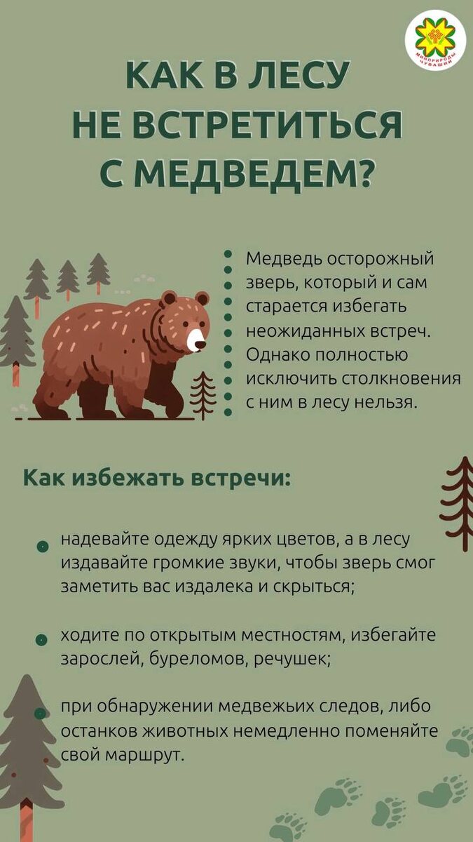 🐻Проводя время в лесу, не исключено, что вы можете повстречать местных обитателей – животных. Ничего страшного не случится, если это будет птица или какой-либо другой безобидный и небольшой зверек. Но вот уж точно, с кем бы любители отдыха на природе не хотели бы встретиться, так это с медведем. Как же не натолкнуться на косолапого и что делать, если вы все же встретились со зверем, расскажем в карточках👉 #МинприродыЧувашии