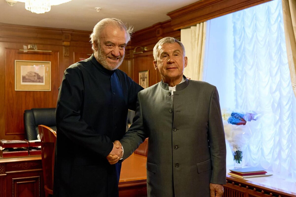 В Москве, перед началом спектакля, Рустам Минниханов побеседовал с дирижером, художественным руководителем и генеральным директором Мариинского театра, генеральным директором Большого театра Валерием Гергиевым.