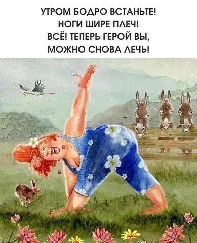Утренний героизм огородника Знаете, как выглядит моя ежедневная зарядка перед тем, как бежать к рассаде? Почти как на картинке! 😄 "Ноги шире плеч" — чтобы случайно не задеть горшки с петунией. "Бодро встать" — это когда надо дотянутся до четвертой полки с рассадой с табуретки. "Можно снова лечь" — мечта, которая сбывается… но только поздно вечером. А если серьёзно — без зарядки огороднику никуда: то грядку вскопать, то за рассадой ухаживать, то от комаров убегать. 💪 А вы как разминаетесь перед огородными подвигами? Может, у вас есть свои «фирменные» упражнения? Например: 🚿"Наклоны за забытой лейкой" ☔️"Прыжки от внезапного дождя или снега" 👢"Бег на месте… потому что грядки всё равно не убегут" Делитесь в комментариях — посмеёмся вместе! 😁