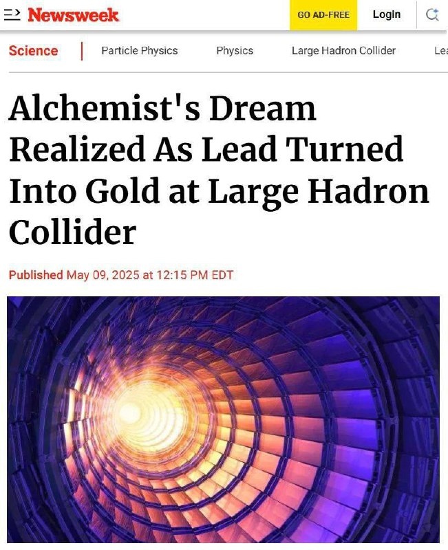 Алхимия ушла в прошлое! В Большом адронном коллайдере свинец превратили в золото. То, что веками не удавалось Ньютону, теперь реальность благодаря науке.