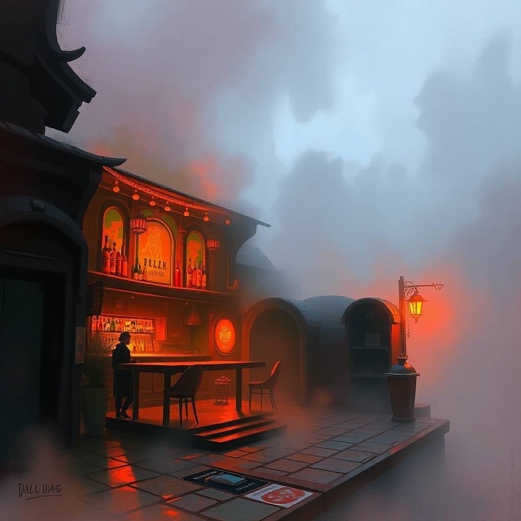 Неон бара «Галактический приют» мигает аритмично, как остановившееся сердце. На стойке — дымящийся стакан с напитком, который никто не допил. В углу — разбитый голографический интерфейс с кричащим «ACCESS DENIED». На полу — следы крови? Нет, просто вишнёвый сироп. Или нет?