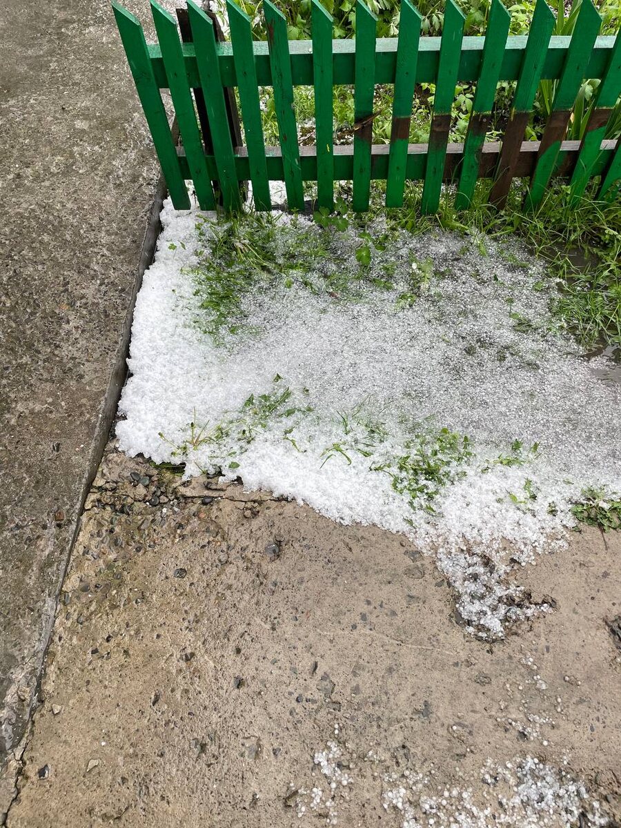 ⛈ Грозовой фронт из Горно-Алтайска движется на северо-восток. А в Майме вместе с ливнем был град. От подписчика.