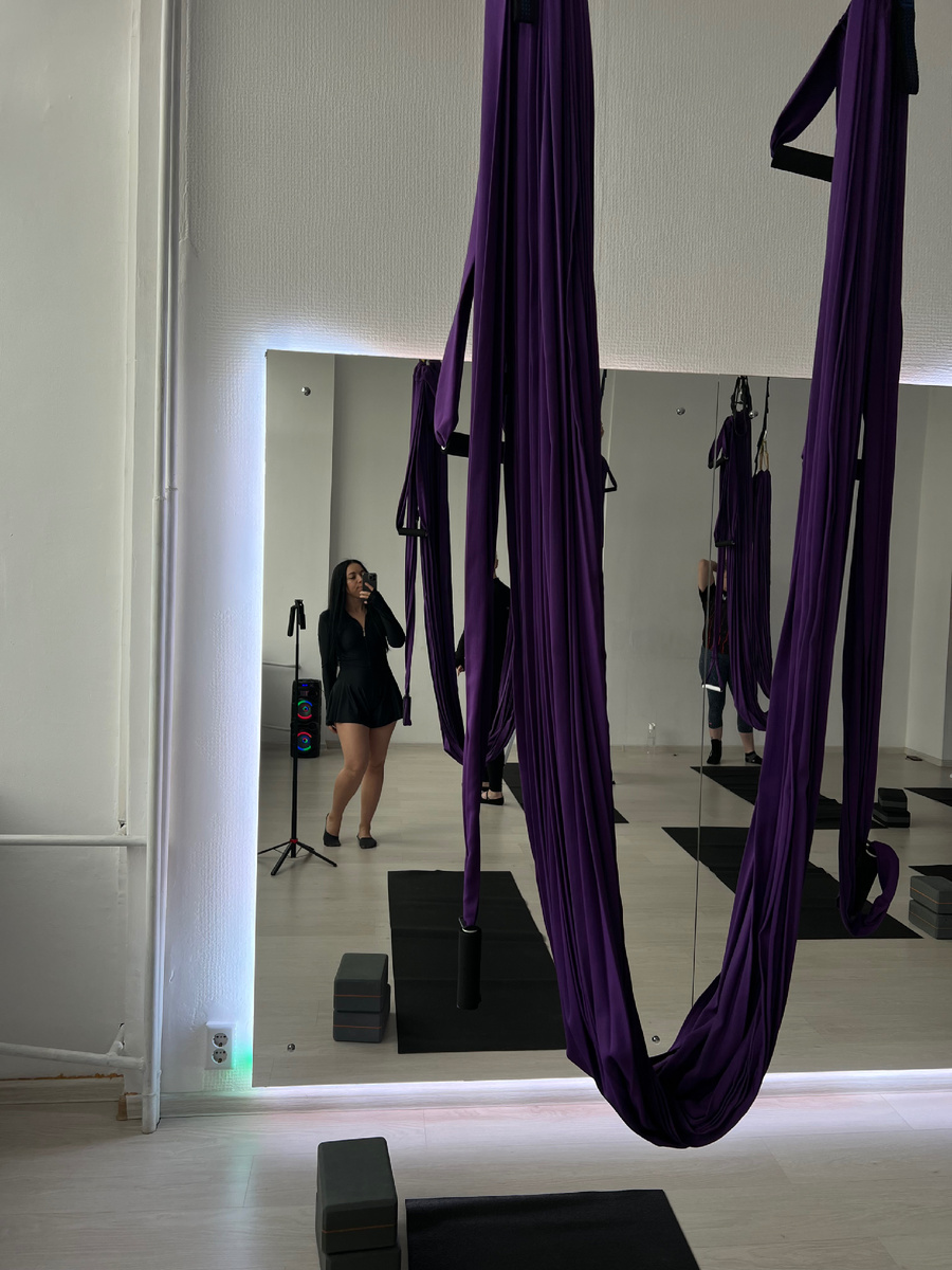 Такое занятие меня заинтересовало совсем недавно и я решила попробовать, что это такое. 👌Кстати это называется аэростретчинг по модному. Это деликатный метод растяжки, который отлично подходит для тех - кому скучно на обычной растяжке. 🙌🏻Занятие проходит в невесомости и снимает нагрузку с позвоночника, укрепляет мышцы, связки и суставы. 💫Для меня сочетание необычное, которое я встретила в студии «Dinamica». ❤️Занятие оказалось очень крутым и интересным. Благодаря тренеру Александре мы и потянулись, и позанимались, и расслабились в конце. 🙌🏻Желающих посетить такую тренировку много и я понимаю почему, это оптимальное занятие - которое круто подходит чтобы поактивничать и отключить голову. Кстати, я уточнила по ценам: ✔️Для новеньких занятие стоит 400 рублей. ✔️Разовое занятие стоит 1000 рублей. ✔️Полный безлимит на все направления стоит 8600 рублей, я взяла такой чтобы выгодно попробовать всё. Полный прайс можно посмотреть у ребят в соцсетях. Адрес студии растяжк