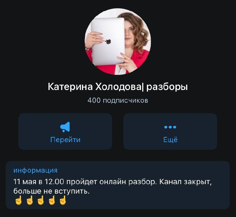 ⏳ Сегодня в 12:00 по Москве начнётся разбор с Екатериной. Ссылка будет только у тех, кто уже в закрытом канале. Канал закрыт — туда попали только первые 400 человек. Если вы успели — проверьте уведомления. Если не успели — следите за анонсами. Повтора не будет.