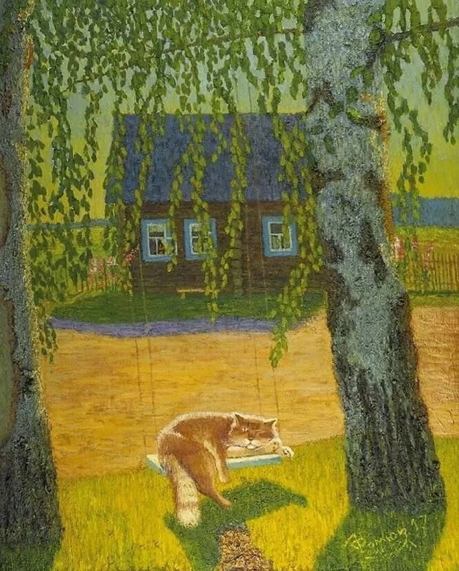 Художник Василий Фомюк, "Жарко" Воскресный #Арт@poldner #Коты@poldner