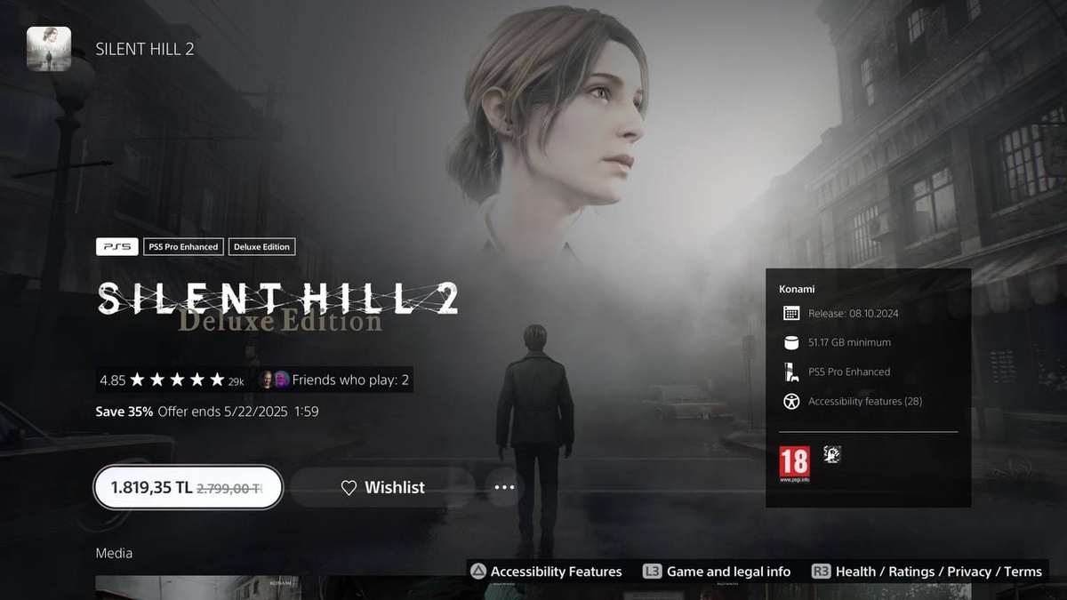 В PS Store до 22 мая проходит распродажа «Акции нового уровня» — скидки есть как на новые, так и на старые игры. Например, Silent Hill 2 Deluxe отдают за 1819 TL, трилогия ремейков Resident Evil — за 1731 TL, а The Dark Pictures и RE Village Gold — со скидкой 60%. PlayStation Новости 🔥 Актуальные скидки | смотреть