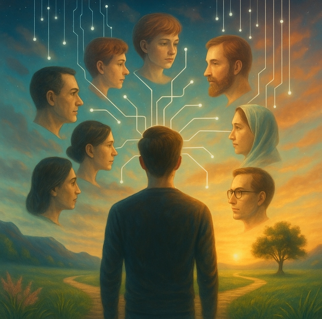 Когда мы смотрим на другого человека, мы не просто наблюдаем — мы вживаемся. Наш ум невольно примеряет на себя его образ, словно актёр, встающий на сцену и играющий чужую роль. Восприятие другого — это не объективный процесс, а творческий акт, в котором наше «я» незаметно становится тем, кого оно воспринимает. Мы строим внутреннюю модель собеседника, создаём в воображении его мотивацию, мысли, эмоции, и всё это — с опорой на самого себя.