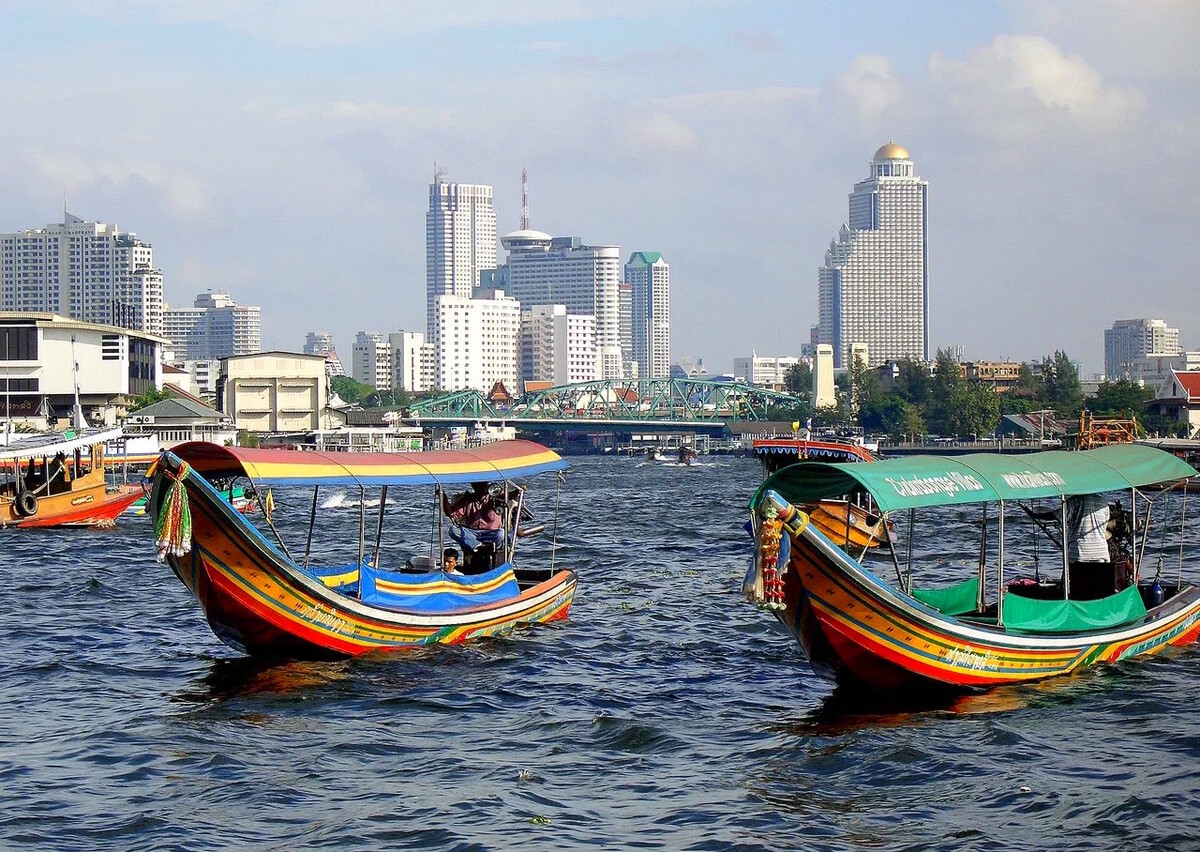 В восемь — в самом разгаре рынки на воде. Самый экзотичный — в районе Тхонбури. Чтобы попасть туда, у причала Чанг надо нанять «длиннохвостую» лодку с небольшой осадкой и длинным гребным валом. Именно на такой в одной из серий Бондианы удирал Агент 007, спасаясь от международной мафии. Длиннохвостая лодка с трудом протискивается между другими плавсредствами, груженными морской живностью и товарами из близлежащих деревень. Толчея такая, что продавцы протягивают товар покупателям в корзине на длинном шесте и таким же образом получают за него деньги. К полудню, когда становится совсем жарко, рынок пустеет и только большие полуметровые рыбы лениво подбирают в мутной воде остатки выброшенной за борт еды.