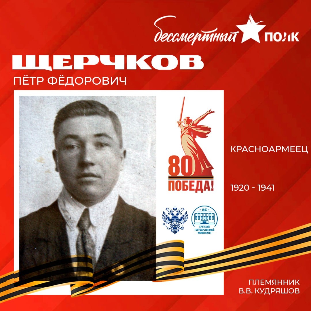 🏵 Пётр Фёдорович Щерчков - молодой солдат, пропавший без вести в первые месяцы войны… Призванный на военную службу в октябре 1940 года, Пётр Фёдорович в рядах РККА встретил начало Великой Отечественной войны. К сожалению, уже в августе 1941 года красноармеец П.Ф. Щерчков пропал без вести. Извещение о сыне и брате семья получила только весной 1942 года. Пётр Фёдорович не успел совершить подвиг, его жизнь трагически оборвалась в самом начале войны. Но мы помним его, молодого солдата, вставшего на защиту Родины в трудный час. #мыпомним 🎗