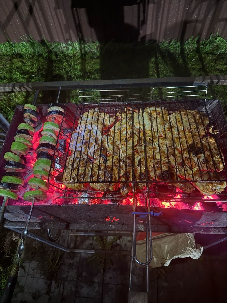 Ах, майские праздники! Время теплых вечеров, пикников и ароматного мяса на огне. Именно такой вечер недавно провели моя дочь и я. Мы решили приготовить настоящий майскопраздничный ужин — шашлык из курицы, свежие овощи на гриле и традиционную картошечку в углях. Этот простой рецепт давно стал семейным достоянием, ведь каждый раз блюдо получается таким вкусным, будто первый раз пробуем! Подготовка продуктов Для начала выбрали ингредиенты: Шашлык из курицы - Курица, кусочки которые вы любите - Майонез домашний или магазинный — примерно полстакана - Кетчуп томатный классический — четверть стакана - Лук репчатый крупный — 2 шт. - Специи: соль, черный перец молотый, паприка сладкая, чеснок сушеный, хмели-сунели — каждая приправа по вкусу - Масло растительное — немного для смазывания решетки гриля Куриное мясо предварительно промыли холодной водой и обсушили бумажным полотенцем. Овощи на гриле Овощная составляющая ужина была представлена свежими сезонными продуктами: - Баклажаны неб