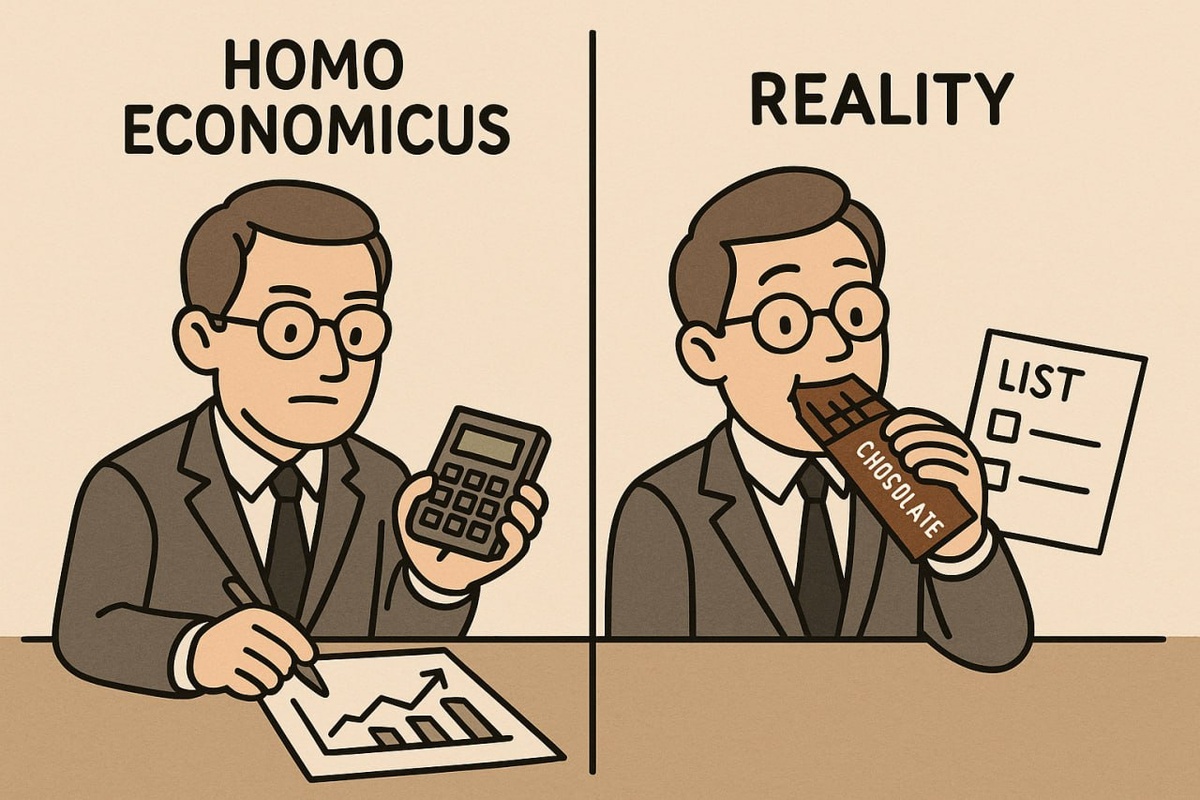 🧠 Что такое поведенческая экономика? И почему классическая экономика ошибается в нас? 📌 Классическая экономика считает, что человек — рациональный агент: он всегда взвешивает «за» и «против», считает издержки и выгоды… Но если бы это было правдой, никто бы не покупал абонемент в спортзал и не ходил. 💥 Поведенческая экономика говорит: мы не рациональны — мы предсказуемо иррациональны. Мы ленивы, забывчивы, поддаёмся эмоциям, боимся потерь и любим простые решения. Но главное — в этих ошибках есть закономерность. 🔍 Пример: На входе в кафе два меню: «Йогурт— 60% жира «Йогурт — На 40% меньше жира!» Хотя йогурты одинаковы, второе описание чаще приводит к покупке. Это эффект фрейминга — как именно подаётся информация, сильно влияет на выбор. 💡 Вывод: Поведенческая экономика изучает, почему люди делают «неправильный» выбор — и как сделать его «лучше» с помощью дизайна, подсказок и правильной формулировки. 💼 Хочешь разбираться в бизнесе и поведенческой экономике? Подписывайся на Te