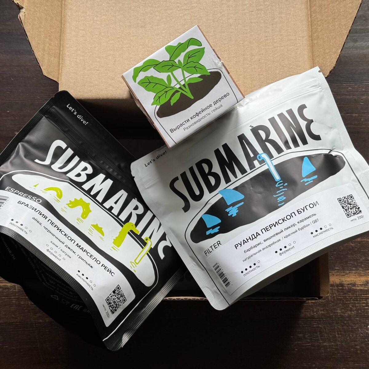 🗒 Субмарине 8 лет! 🎉 Сегодня забрал подписку от Submarine. Вместе с лотами под фильтр и эспрессо приехала гейша. Она приехала в виде зёрен, из которых можно вырастить дерево. Кто знает, может через 4-10 лет буду вам предлагать лимитированную гейшу с собственного балкона 😁 А вчера Субмарине исполнилось 8 лет. Поздравляю коллектив Submarine с этим событием! Пью Субмарину ещё с тех врёмен, когда они назывались БРЮ (см. фотку). По случаю своего дня рождения они выпустили набор Dear Judges, в который вошли восемь самых редких, необычных и чемпионских лотов. Удовольствие не дешевое, но шанс такое попробовать – уникальный. Сейчас доступен предзаказ, а отправка планируется на 23 мая. @Кофезавр