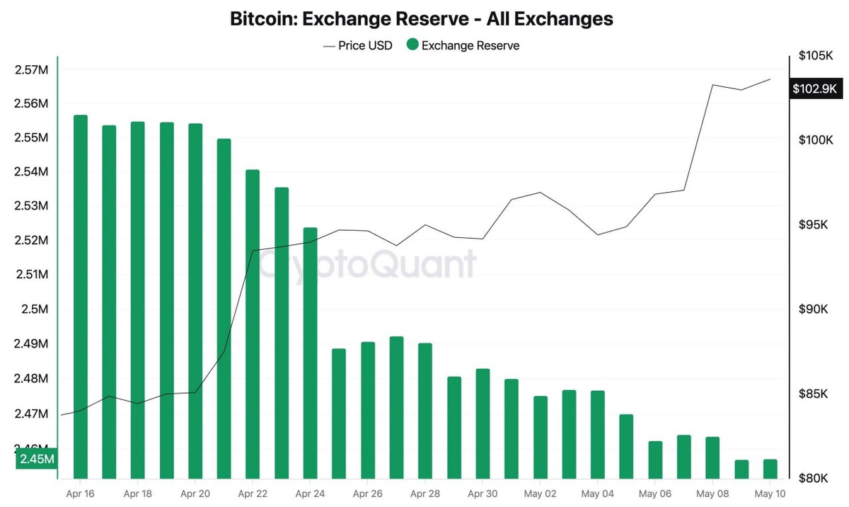 🔽 За последний месяц с ведущих криптобирж было выведено более 110 000 BTC