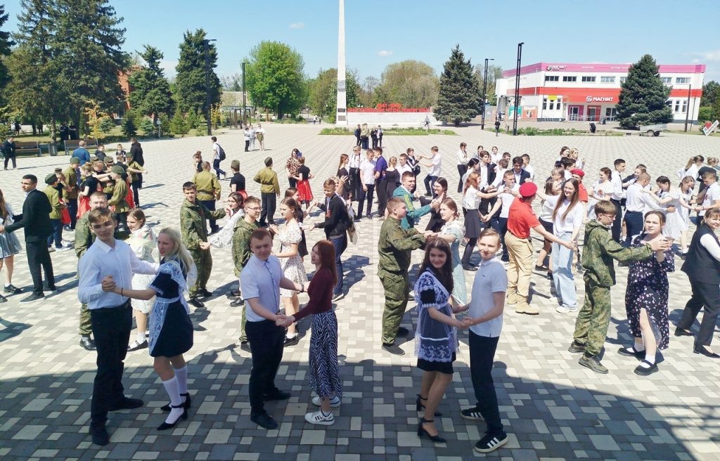 6 мая на площади села Развильного состоялась акция “Вальс Победы”, посвященная 80-летию Великой Победы! Акция проводится в России с 2014 года, впервые прошла в Развильном в канун 9 Мая. В танцевальном празднике под открытым небом приняли участие обучающихся и учителя РСОШ №9, жители села. Все они собрались на центральной площади, чтобы закружиться в вальсе под звуки песен военных лет, отдавая дань памяти и уважения тем, кто отстоял мирное небо над головой. Акция “Вальс Победы” направлена на сохранение исторической памяти о героях Великой Отечественной войны и повышение уровня патриотического воспитания молодежи. “Вальс Победы” — это символ единства, силы духа и безграничной благодарности наследников Победы своим героическим предкам. Объединившись, мы сможем не только сохранить, но и укрепить ценности, ради которых сражались наши деды и прадеды. (По информации ДК Развильненского сельского поселения)