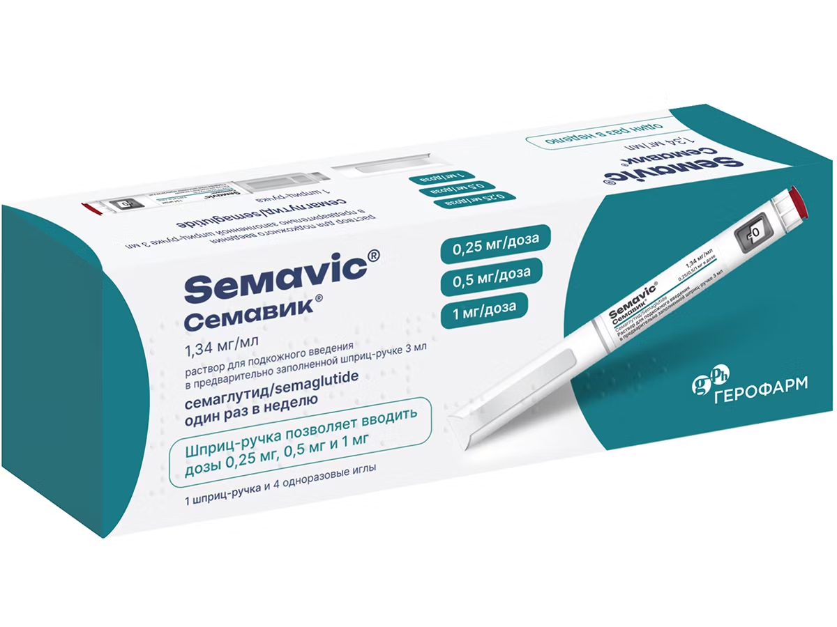 Семавик® воздействует на рецепторы в головном мозге, отвечающие за чувство голода, что способствует снижению аппетита и уменьшению потребления калорий. Это может привести к постепенному снижению массы тела, особенно при соблюдении сбалансированной диеты и физической активности. Препарат стимулирует секрецию инсулина и снижает секрецию глюкагона в зависимости от уровня глюкозы в крови, что способствует улучшению гликемического контроля у пациентов с сахарным диабетом 2 типа. Начальная доза 0,25 мг считается подготовительной и помогает организму адаптироваться к препарату, снижая риск возникновения побочных эффектов, таких как тошнота или расстройства желудочно-кишечного тракта. Семавик® может способствовать снижению уровня глюкагона, улучшению чувствительности к инсулину и нормализации обмена веществ, что особенно важно для пациентов с метаболическим синдромом. Благодаря снижению аппетита и улучшению контроля над приемом пищи, пациенты могут легче придерживаться здорового образа жизн