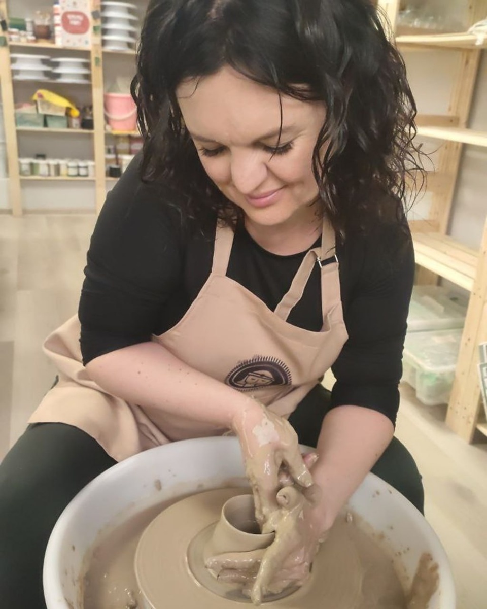 Когда встреча с гончарным кругом становится медитацией 🥰 🌸 Наталья впервые пробовала работать с глиной, и это было что-то особенное: мягкость, тепло, текучесть... А посмотрите на её лицо — чистое умиротворение. Это не просто мастер-класс — это внутренняя пауза 🌈 #зарниань #глинаиумиротворение #гончарныйкруг #тактильноепогружение #керамикадлявсех