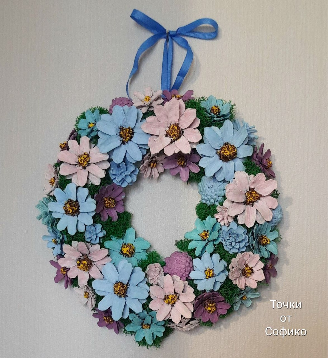 На дворе май, а тепла так и нет. Но ветреницы в лесу цветут)) А у меня такой веночек из "космей" появился. Не могу решить- какой подвес лучше- голубой или белый? Что посоветуете? Веночек из шишек и натурального стабилизированного мха, пока свободен. Могу сделать аналогичный в любом цвете. По всем вопросам пишите в лс София Балушкина #шишки #венокизшишек #декоративныйвенок #декордачи #декордома