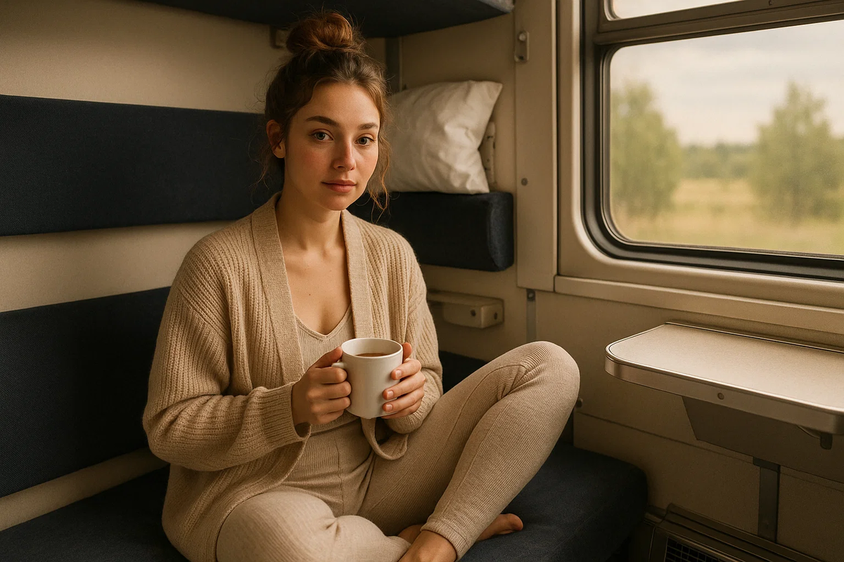 — Паша, не забудь надеть тёплые носочки, пол тут, кажется, совсем промозглый, — напомнила Инна. Паша, устроившись на нижней полке, со вниманием следил за строчками в книге и не отрывал взгляда. Рядом лежал его любимый плед и подушка в наволочке с динозаврами — настоящий «поездной арсенал». Ещё совсем крошка, но уже спокойный и вдумчивый, в поездках он почти не доставлял хлопот. — Ладно, — тихо откликнулся он, не отрываясь. Светлана, его бабушка, готовила скромный ужин на складном столике: варёные яйца, ломтики куриной грудки, сырная нарезка и небольшой кусок домашнего пирога, всё аккуратно уложено в контейнеры с бабушкиной надписью. Инна улыбнулась — порядок она унаследовала от мамы. — Угощайтесь, — объявила Света, ставя тарелки. — Это пирог с капустой, твой фаворит. Инна одобрительно кивнула, доставая влажные салфетки. Всё на своих местах: плед, книги, чай в термосе — мини-мир в грохочущем вагоне. Она выдохнула, дав себе передышку после недели суеты: школа, отчёты, сборы. И вот — пер